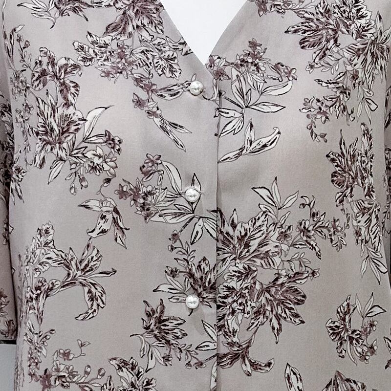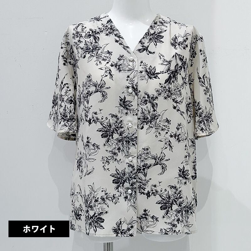 Vネックフレア袖ブラウス 107-3105026hana ホワイト・ピンク