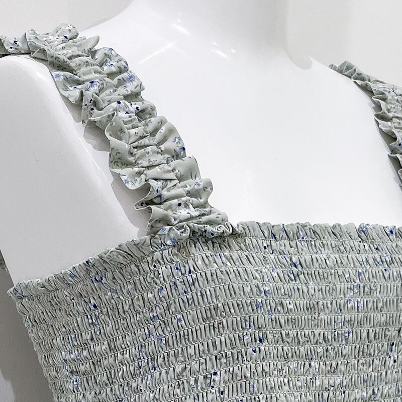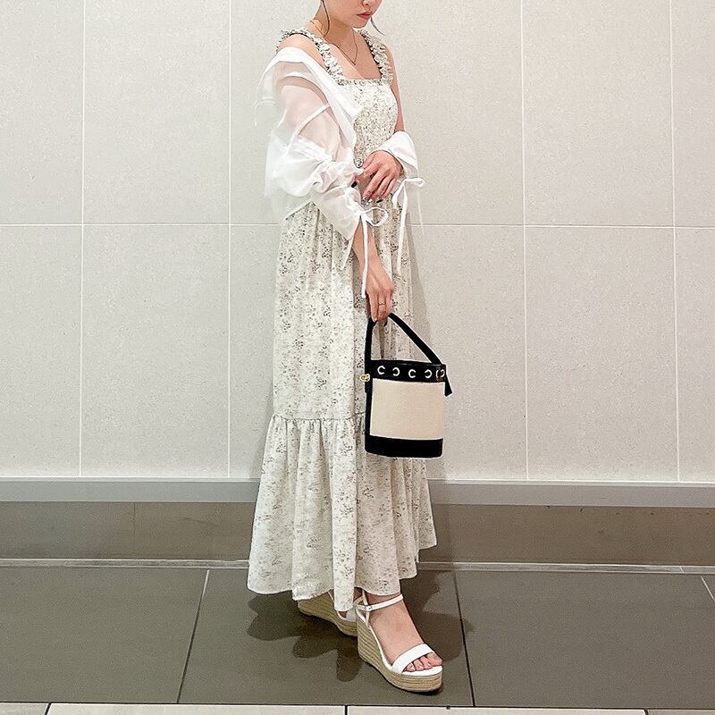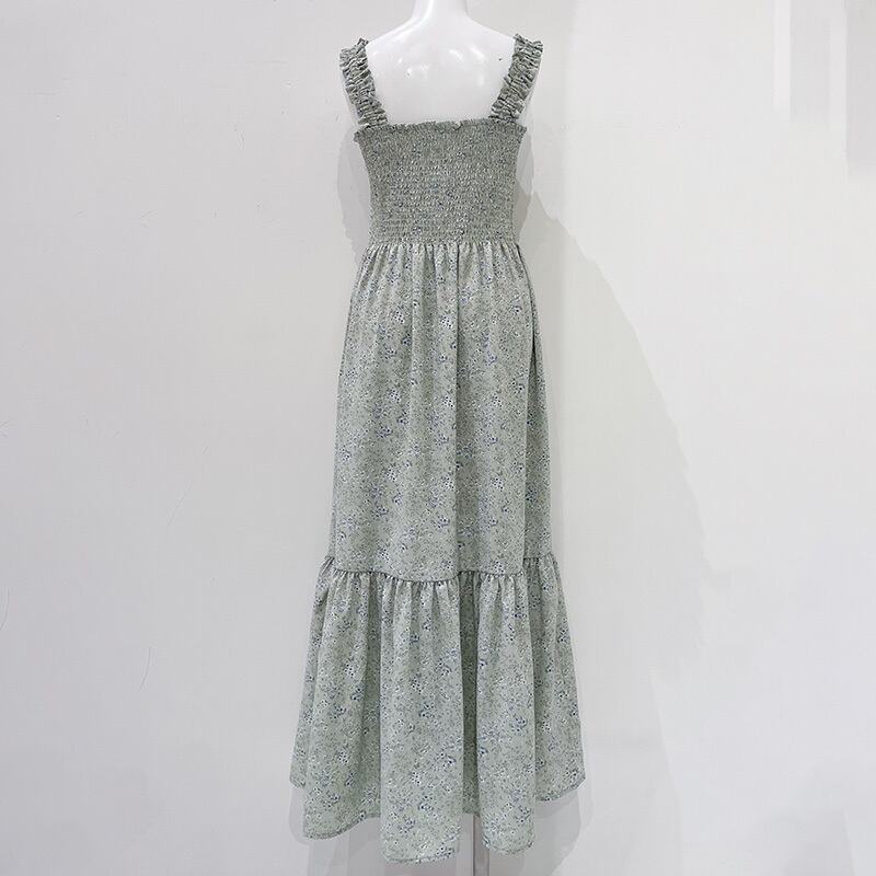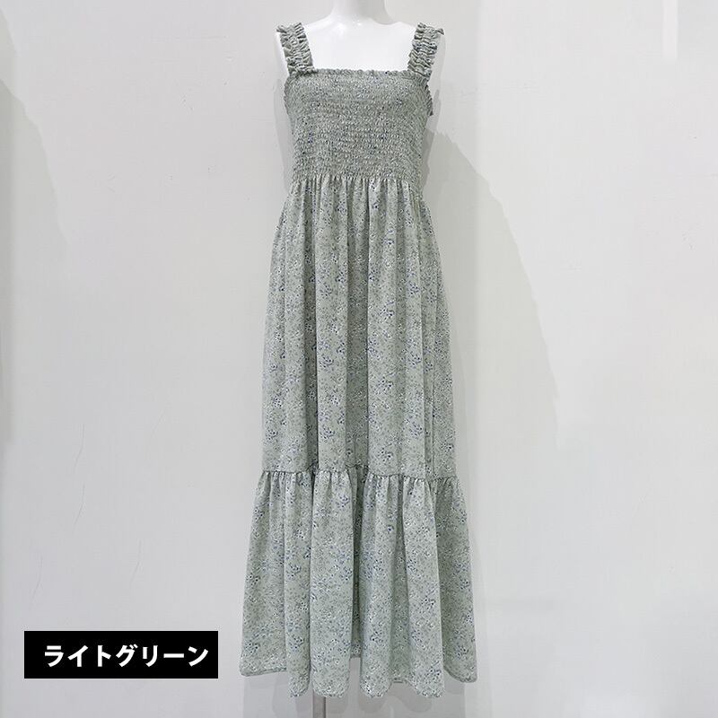 シャーリングキャミ小花柄ワンピース 089-Z2-28821 ホワイト・ライトグリーン・ブラック