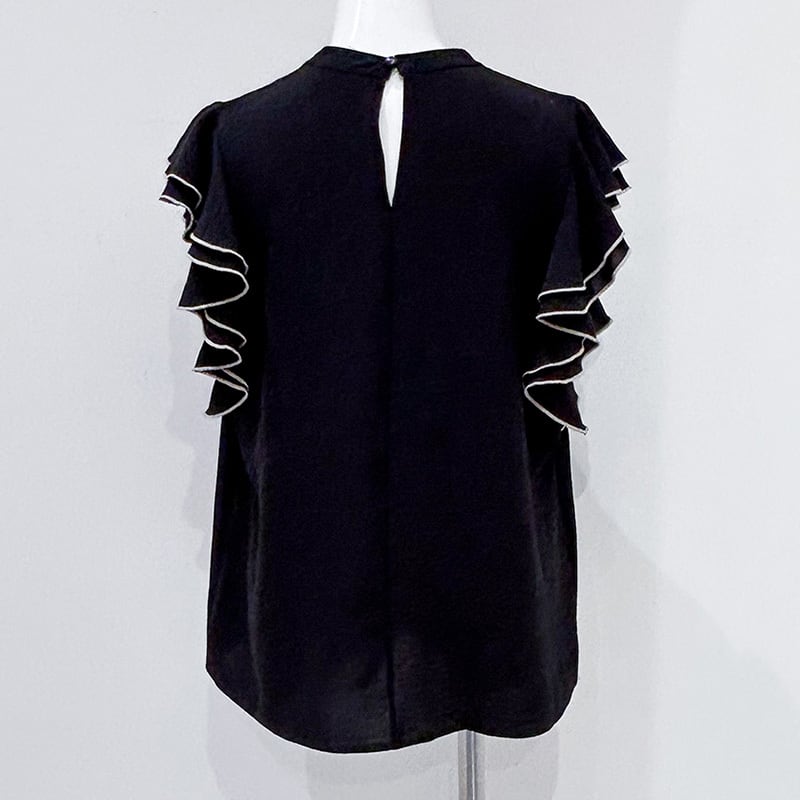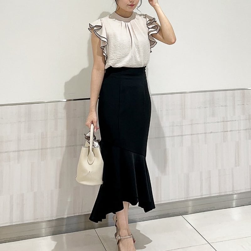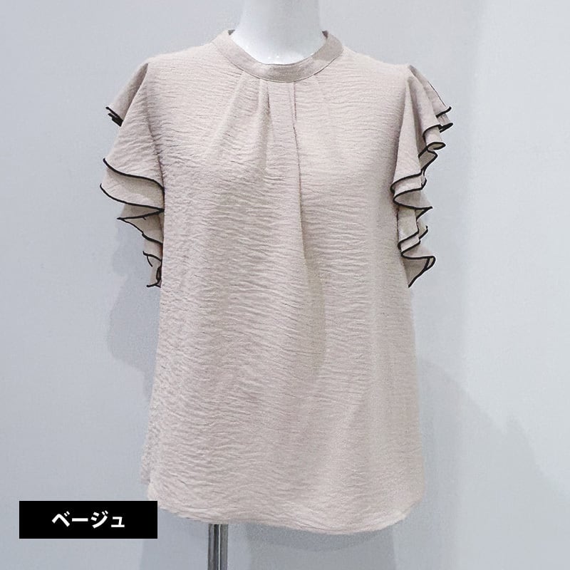 ハイネックラッフル配色ブラウス レディース ブラウス 上品 きれいめ 大人かわいい フェミニン 大人カジュアル 20代 30代 40代 ホワイト ベージュ ブラック