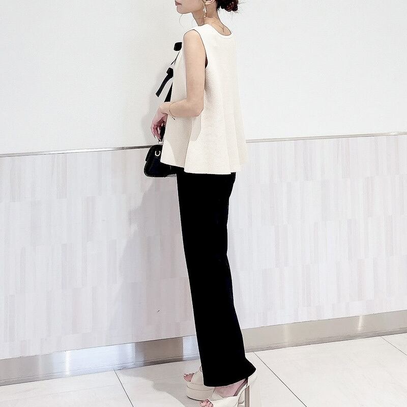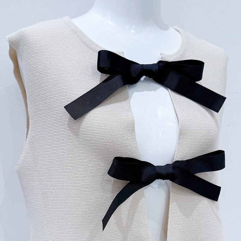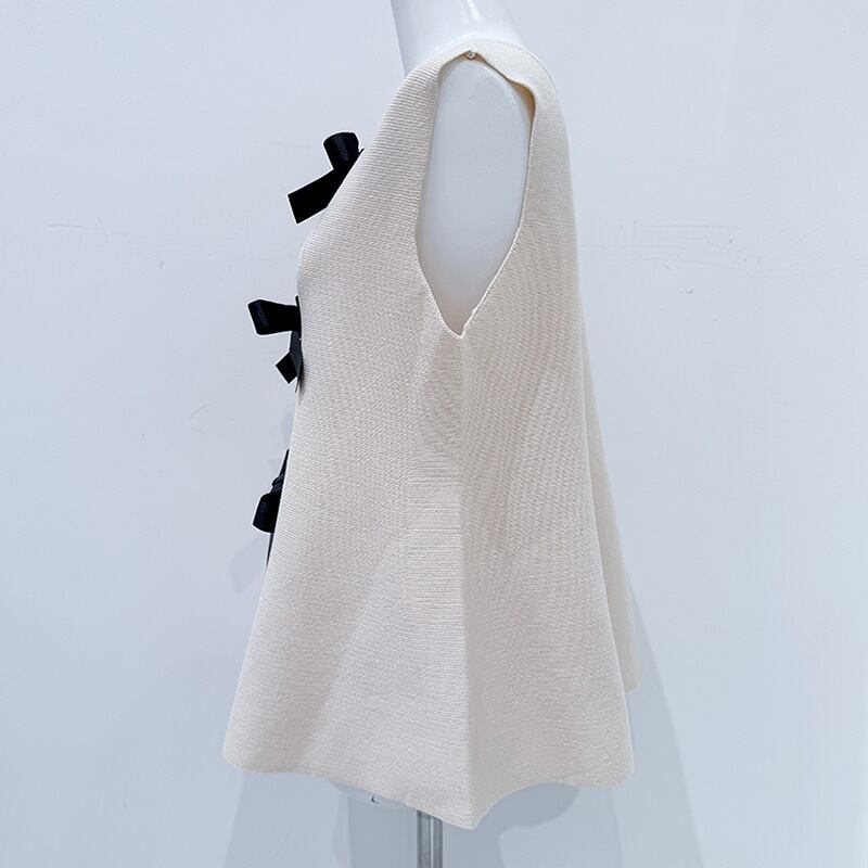愛らしいリボンと軽やかなデザインが特徴の3コリボンノースリトップス。アイボリーの柔らかな色合いは、カジュアルからフォーマルなシーンまで幅広くご活用いただけます!デイリーコーディネートや特別なお出かけにぴったりな一着です。