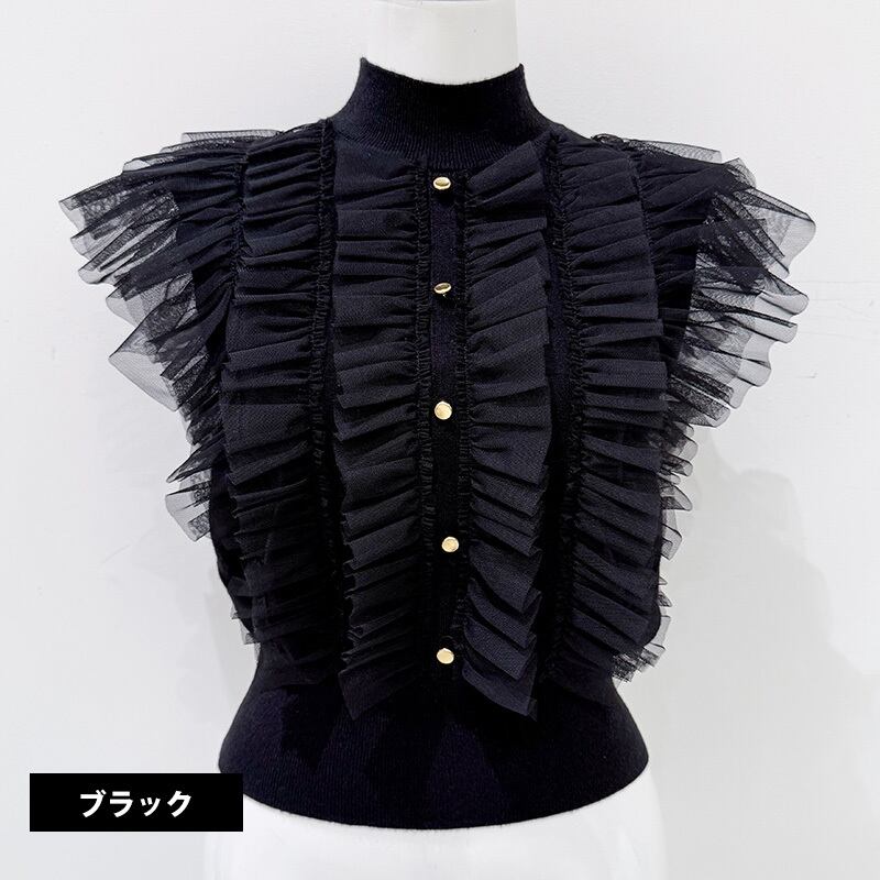 女性らしさを一層引き立てるチュールフリルデザインが魅力のチュールフリルニット。ライトピンクとブラックの2色をご用意!日常のお出かけから特別なシーンまで、幅広く活躍すること間違いなしのアイテムです。フリルのあしらいがシンプルながらも洗練された印象を与え、さらりとコーディネートに取り入れやすい一着です。