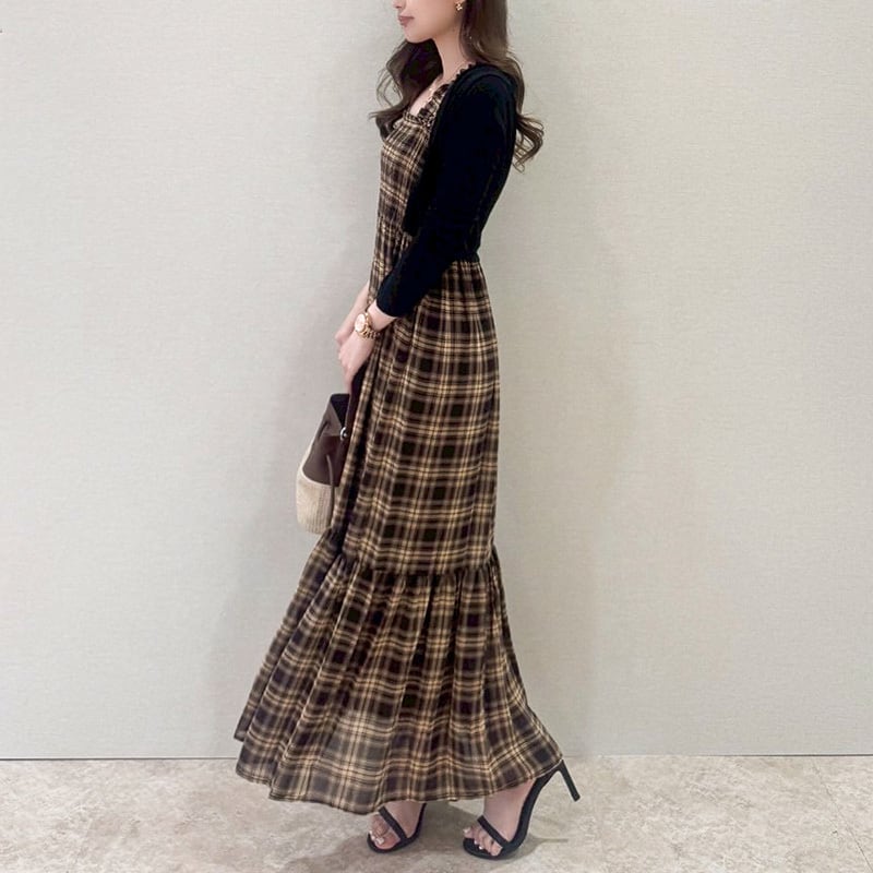 キャミチェックワンピース 089-Z2-28867 ブラウン・ブラック