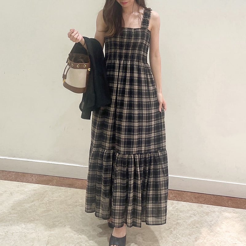 ふんわり広がるシルエットと、ガーリーなチェック柄が可愛いキャミワンピース。