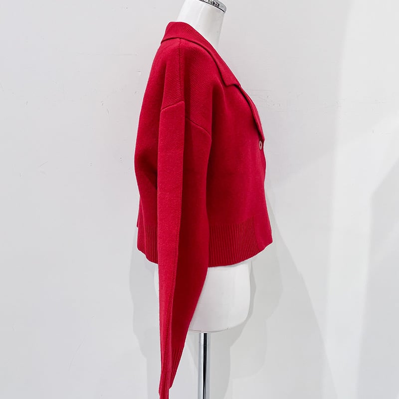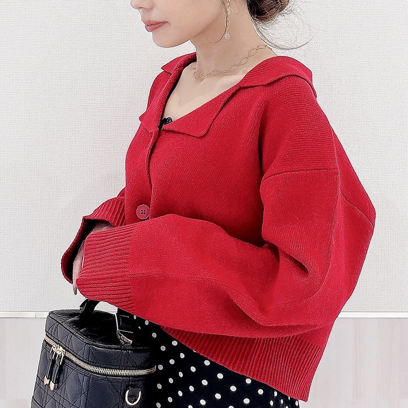 ゆるっとシルエットが可愛いショート丈のニットカーディガン。襟付きデザインで上品さもあり、羽織るだけでこなれ感のある印象に。コンパクトな丈感だから、ハイウエストボトムやワンピースとも相性抜群!やわらかなニット素材で着心地も軽く、デイリー使いにぴったり♩ボタンを閉めてトップス風に着ても、さらっと羽織っても可愛い万能アイテムです!