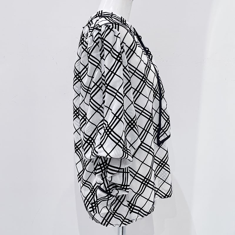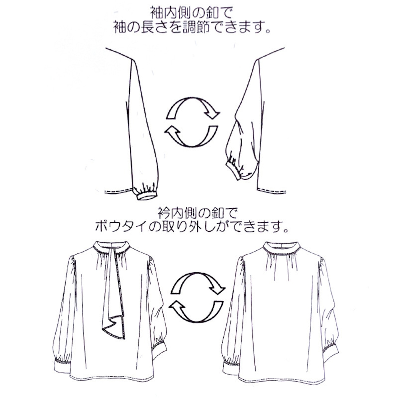 上品な透け感とフロッキーチェックが魅力のフェミニンブラウス。ボウタイはボタンで取り外し可能だから、気分に合わせてタイあり・なしのスタイルが楽しめます!さらにお袖は、内側の2ヶ所のボタンで留めるとクシュっとしたボリューム袖に!外せばすっきりシンプルなスリーブに早変わり!1枚で何通りもの着こなしが叶う、マルチウェイ仕様の優秀アイテムです。スカートにもパンツにも合わせやすく、オンオフ問わず活躍してくれます!