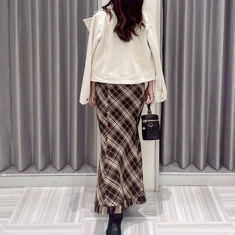 RESEXXYのバイアスチェックビスチェワンピースは、女性らしさを引き立てるマーメイドシルエットが魅力の1枚。キャミタイプでデコルテをすっきり見せつつ、背中にはシャーリングゴムが入っているので体にほどよくフィットし、快適な着心地を叶えてくれます♩バイアスチェック柄が上品な印象を与え、1枚でコーデが完成する主役級ワンピースです!
