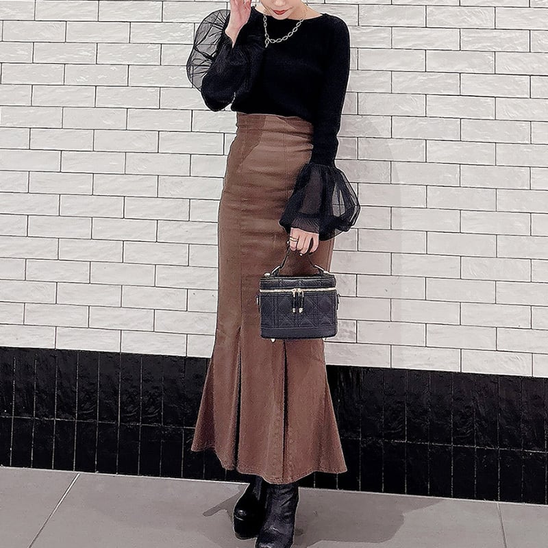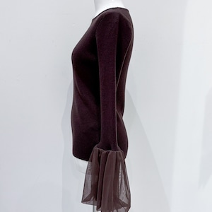 チュールカフスニット レディース チュール袖 ニット フェミニン ニット 大人かわいい きれいめカジュアル バルーンスリーブ デートコーデ ブラウン ブラック 20代 30代 40代