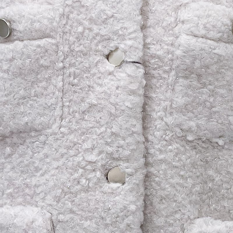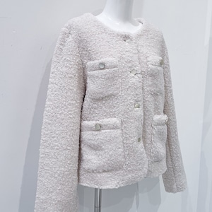 ふわっとしたボア素材が女の子らしさを引き立てる、4ポケットデザインのクルーネックジャケット。コンパクトなシルエットとぽこぽこ質感が、羽織るだけでコーデを一気に華やかにしてくれる一枚です。フロントのゴールドボタンがさりげないアクセントになって、きれいめにもカジュアルにもマッチ!デニムでラフに、スカートで甘めに…どんなスタイルにも“今っぽさ”をプラスしてくれる優秀アウターです♩