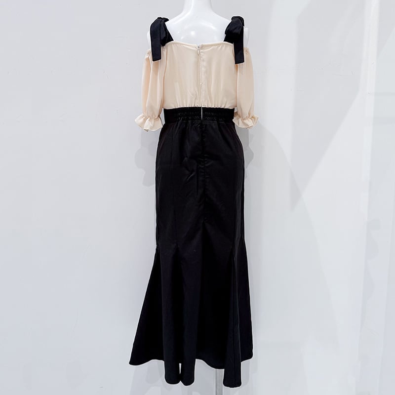 RE:ALLY リアリーオリジナル 肩リボンマーメイドワンピース レディース マーメイドワンピース スタイルアップ ワンピース ブラック 20代 30代 40代