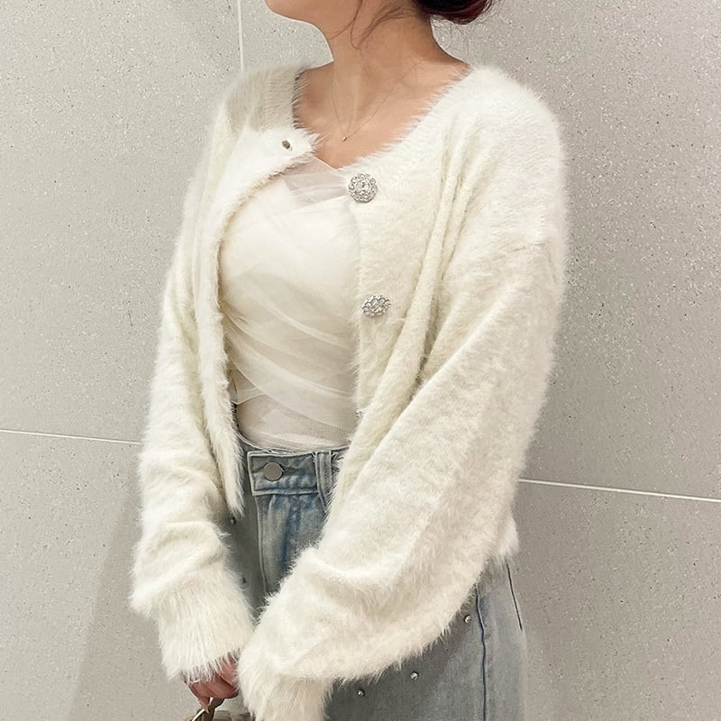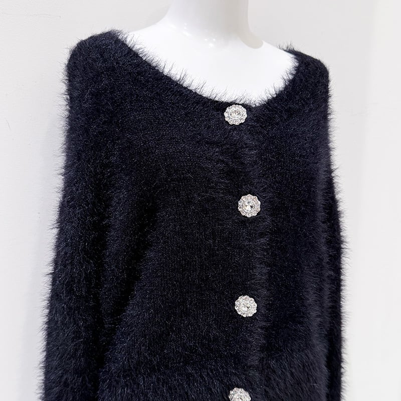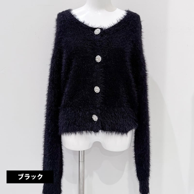 シャギーストーンボタンカーディガン レディース シャギーカーディガン ストーンボタン カーディガン ホワイト ベージュ ピンク ブラック 20代 30代 40代