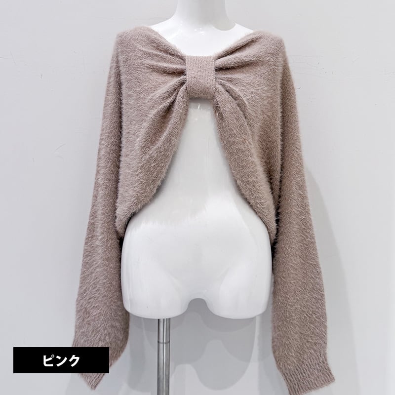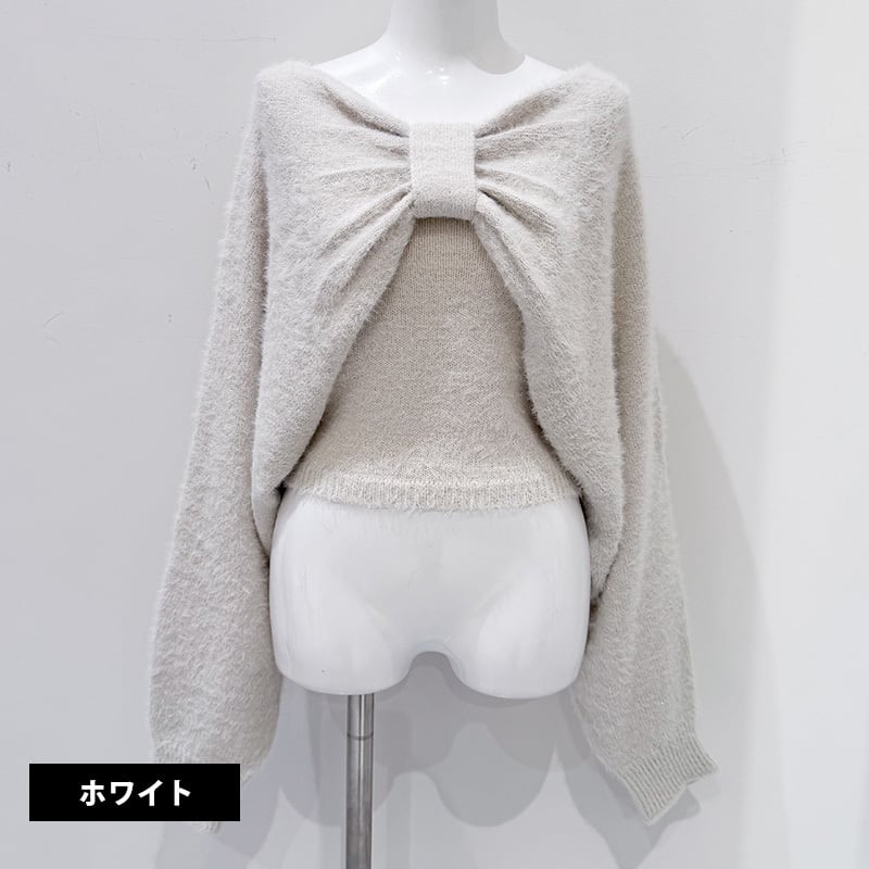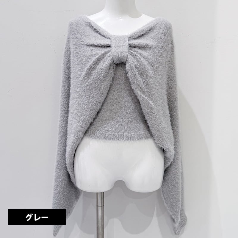 ラメシャギーリボン風ツインニット レディース シャギーニット ツインニット リボン風デザイン ホワイト グレー ピンク 20代 30代 40代