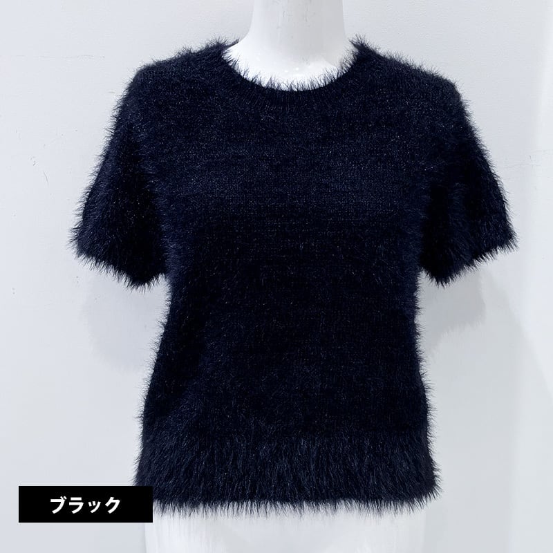 シャギー半袖ニット レディース シャギーニット 半袖ニット トップス ピンク ブラック 20代 30代 40代