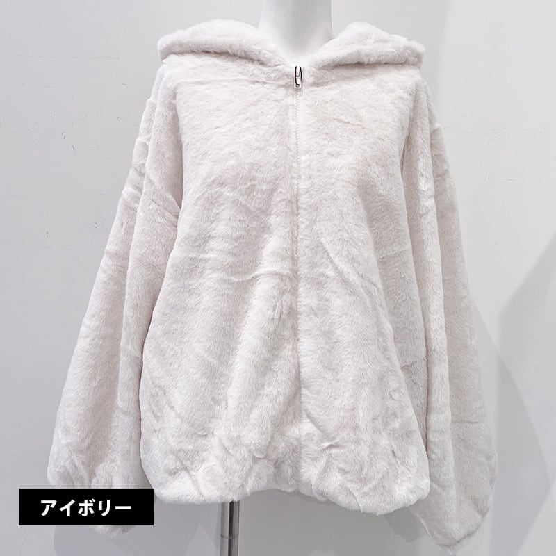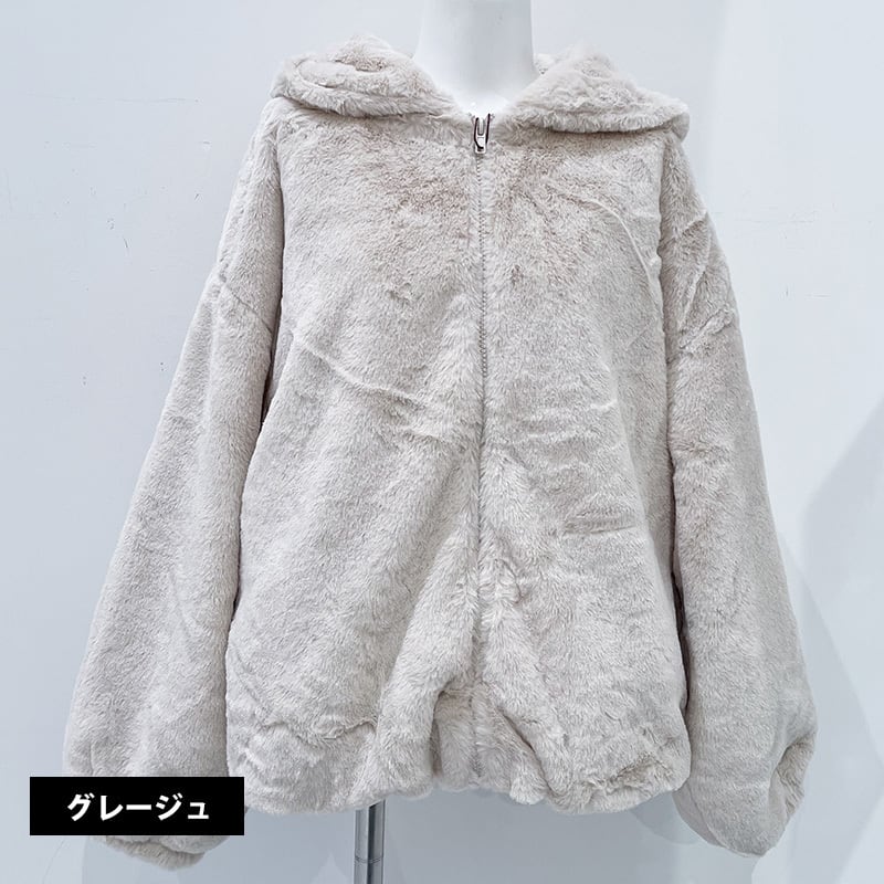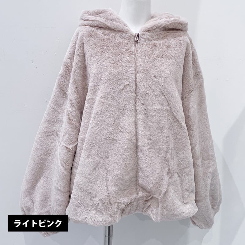 フードファージャケット レディース ファージャケット ジャケット フェミニン アウター アイボリー グレージュ ライトピンク 20代 30代 40代
