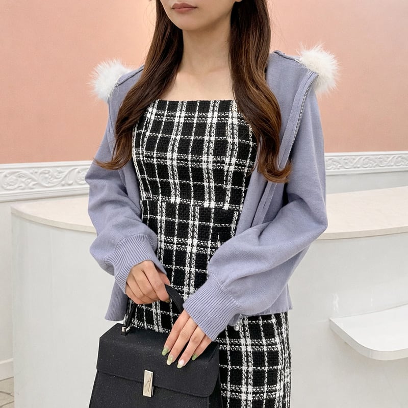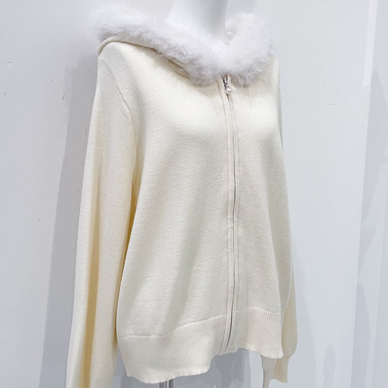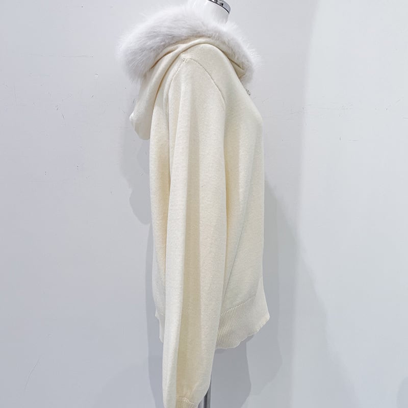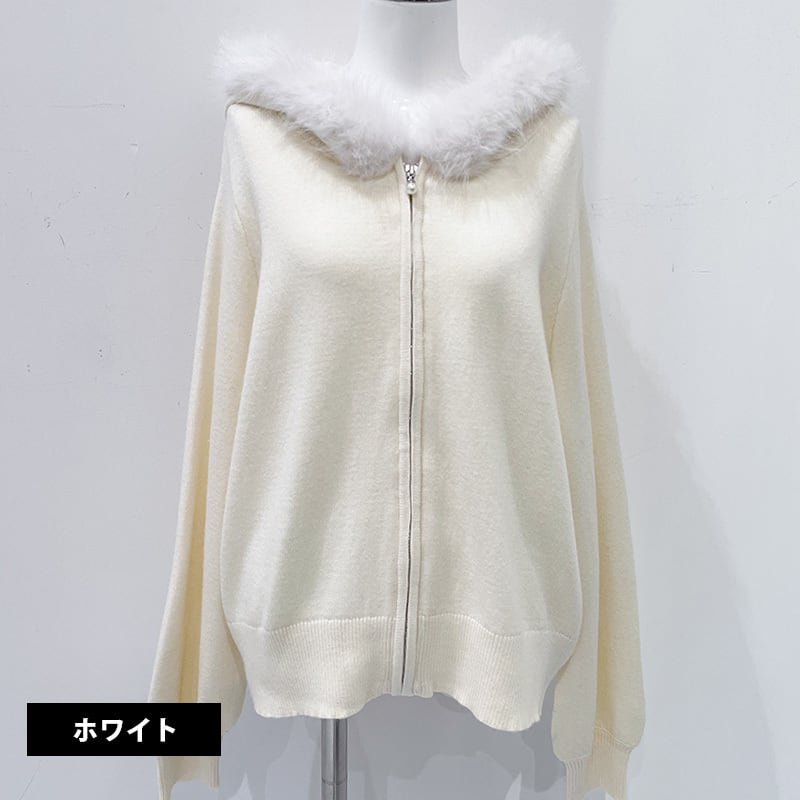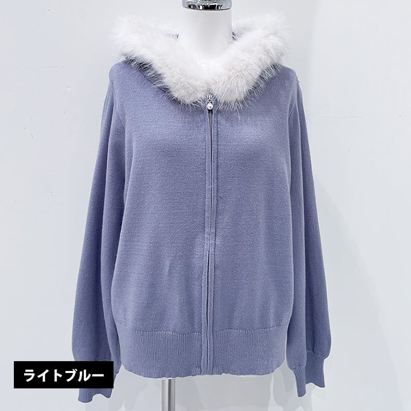 ファートリミングジップパーカー レディース ファー付き パーカー ジップパーカー 大人カジュアル パーカー ホワイト ピンク ライトブルー ブラック 20代 30代 40代