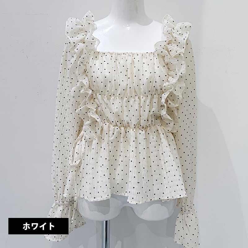 ドットシャーリングブラウス レディース ブラウス トップス きれいめ ブラウス長袖 ホワイト ブラック 20代 30代 40代