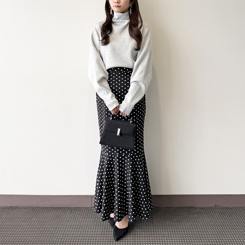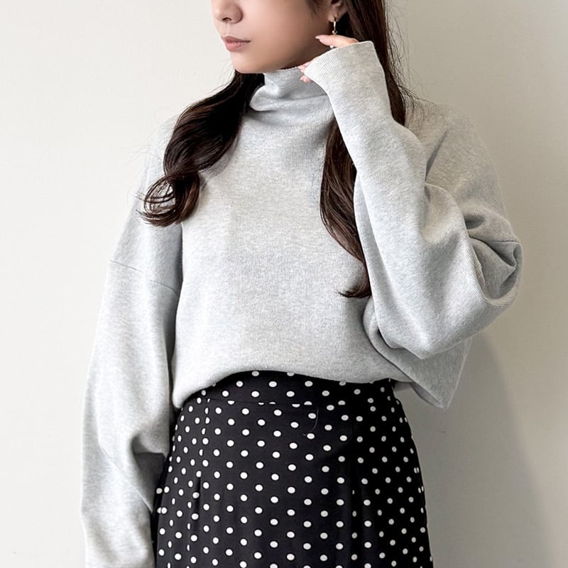ゆるっとしたドルマンシルエットが今っぽい抜け感を演出してくれるハイネックニット♩ふんわり立ち上がるネックデザインで顔まわりもおしゃれ見え◎ゆったりシルエットなのにすっきり見える絶妙バランスが魅力です!シンプルだからどんなボトムとも相性抜群でデイリーに大活躍♩パンツでラフに、スカートで大人フェミニンにも着こなせる万能アイテムです◎