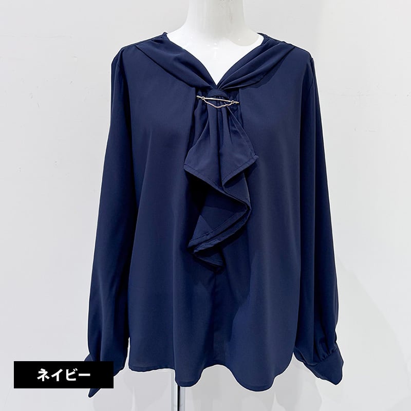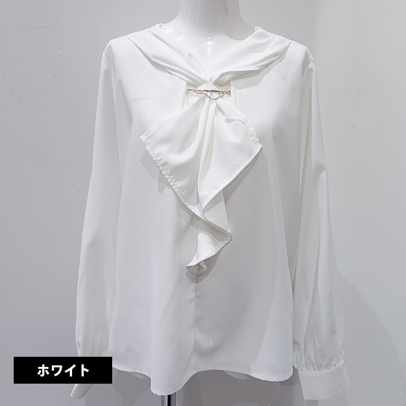 金具チェーン棒タイブラウス レディース ブラウス トップス オフィスカジュアル セレモニー ホワイト ライトグリーン ネイビー 花柄 20代 30代 40代