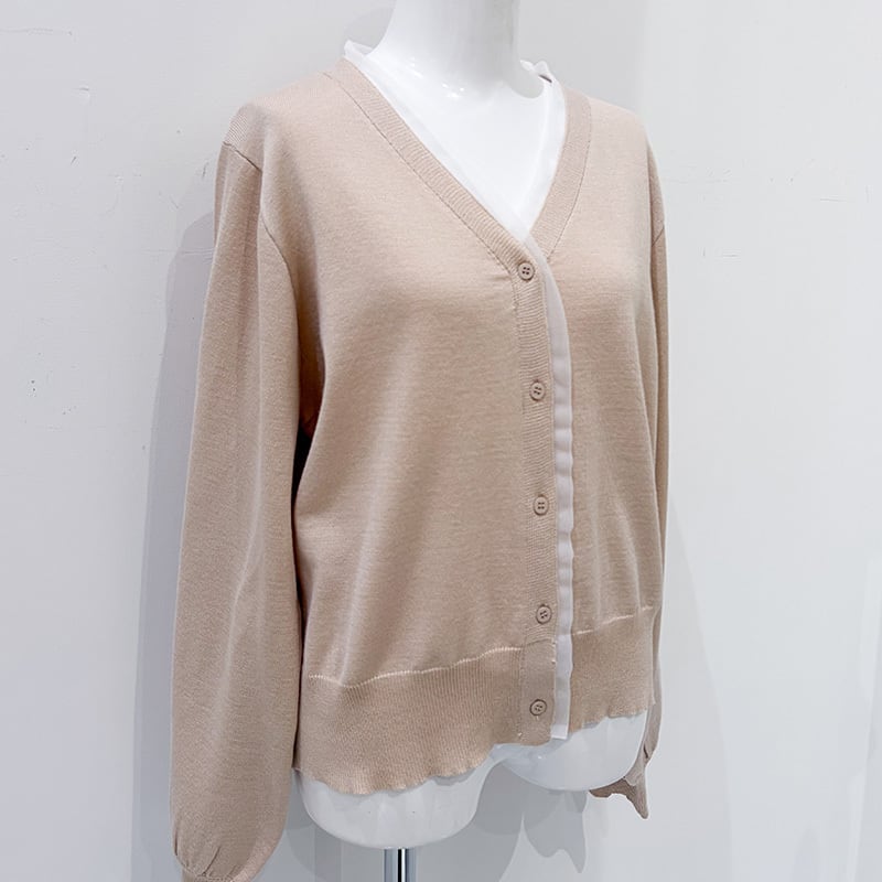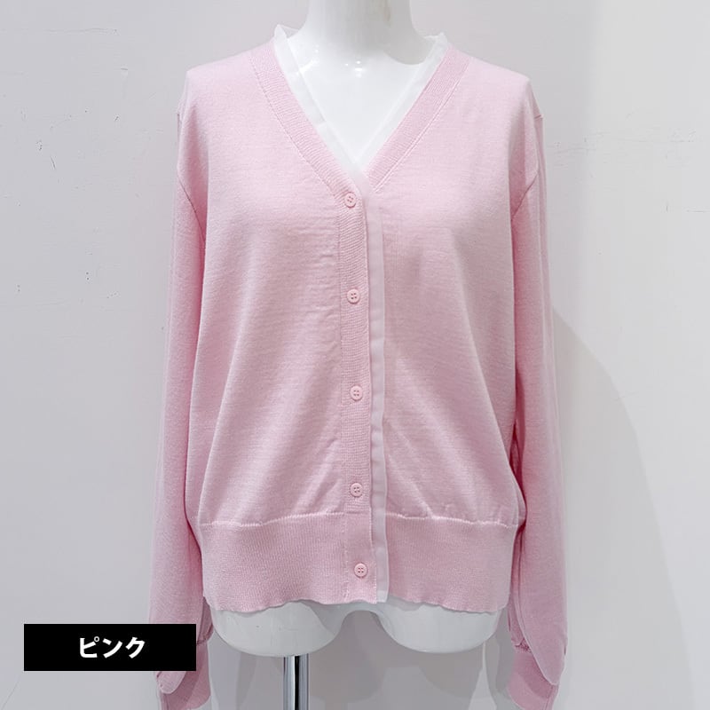 さりげないふちシアーがポイントの、上品見えニットカーディガン。ベーシックなVネックデザインに抜け感をプラスし、シンプルながらもこなれた印象でお召しいただけます!軽やかな着心地で羽織りとしてはもちろん、ボタンを留めてトップス風に着こなすのもおすすめ◎きれいめにもカジュアルにも合わせやすく、オンオフ問わず活躍してくれる優秀アイテムです♩