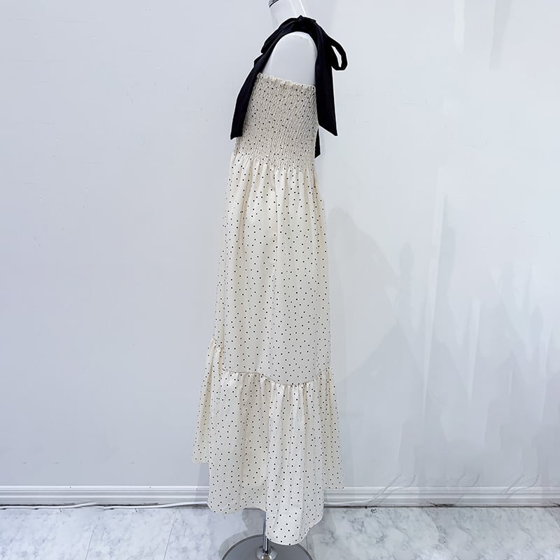 可愛らしい肩リボンデザインが魅力的なアイボリー・ブラックのドットワンピース。女性らしさを引き立てつつ、カジュアルさも兼ね備えた一着です!軽やかな素材感で心地よい着心地を実現し、シーズンを問わずお楽しみいただけます◎ 華やかなドット柄は、デイリーコーデやお出かけのシーンにぴったりです。さらっと一枚で着こなすのはもちろん、カーディガンやジャケットとの重ね着も楽しんでいただけます。