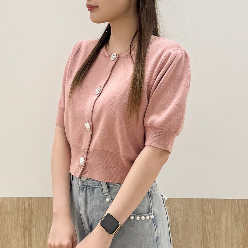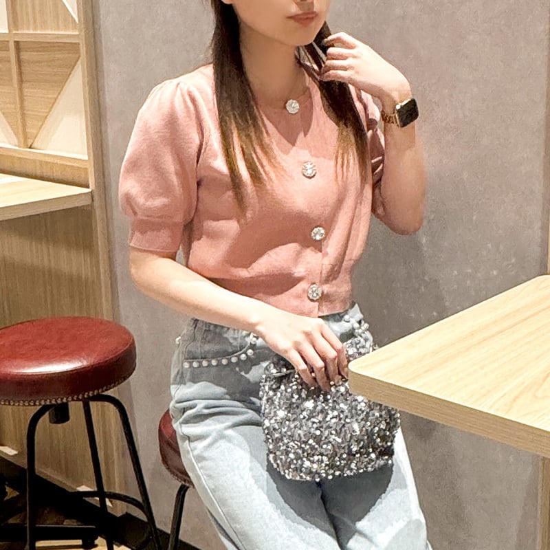スタイリッシュなクルーパフストーンボタンが魅力的なホワイト・グレー・ライトピンク・ピンク・ブラックのニットは、カジュアルからきれいめまで幅広く活躍できる一着です!柔らかな素材感で着心地は抜群、シーズンを選ばず楽しんでいただけるアイテムです◎ ボタンディテールがフェミニンさを引き立て、シンプルなボトムスやスカートと合わせることで、洗練されたコーディネートが完成します。