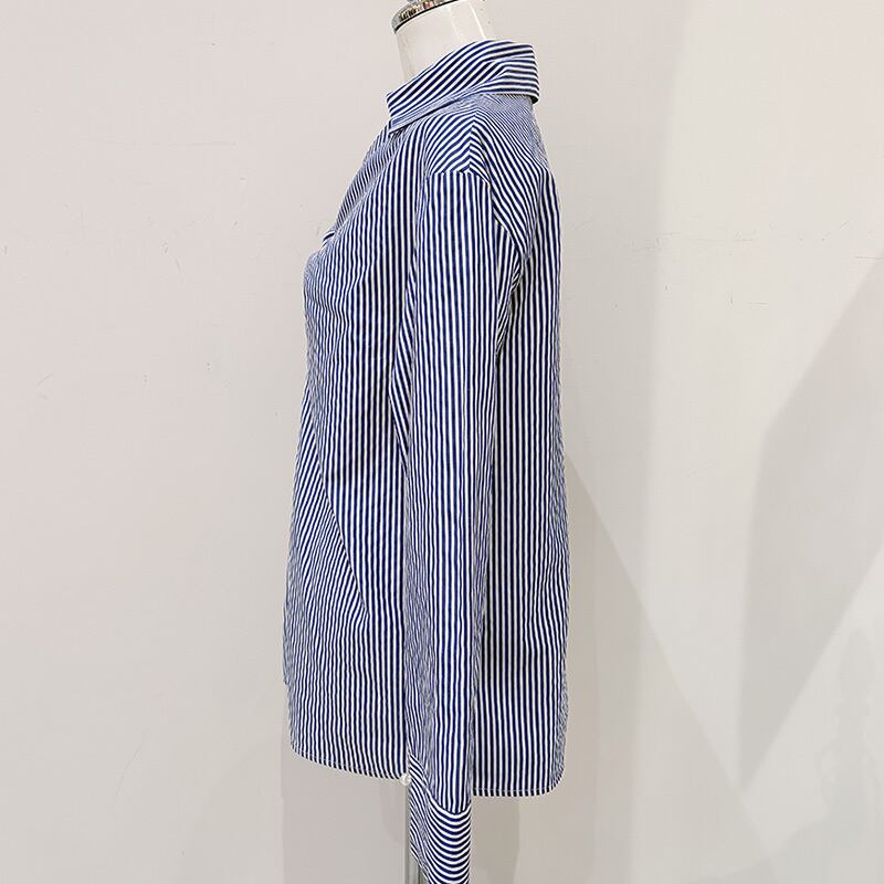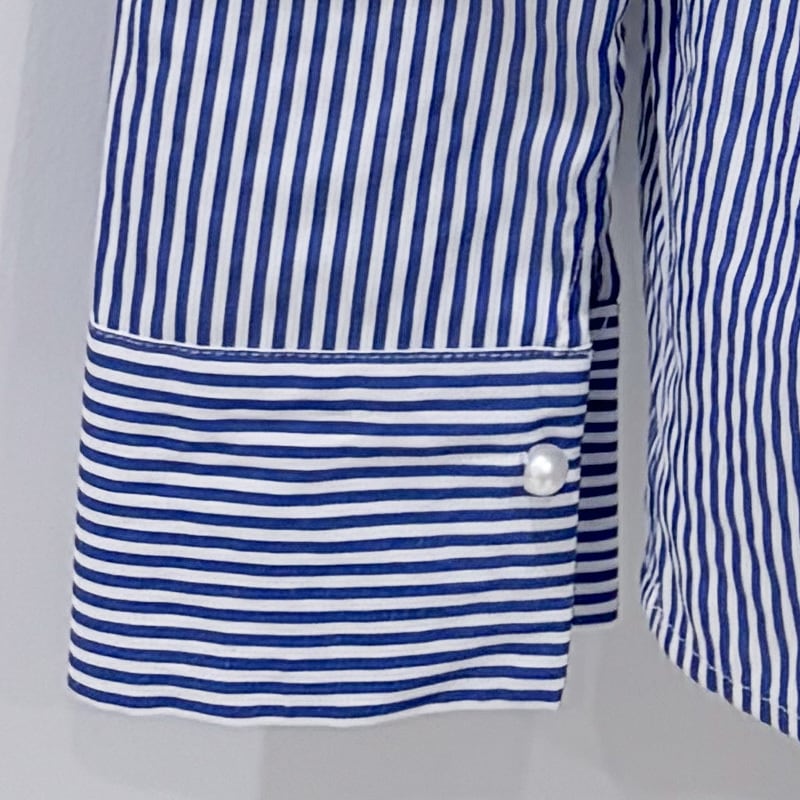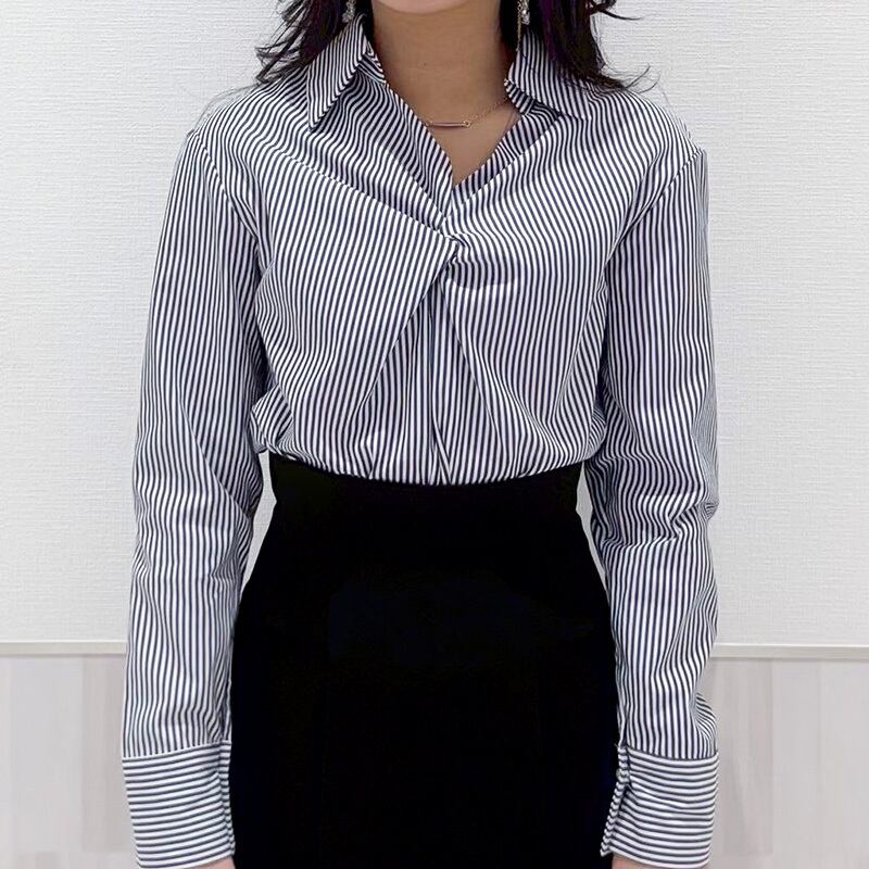 スタイリッシュなツイストスキッパーネックレス付きのストライプブラウス。洗練されたデザインが特徴で、エレガントな印象を与えつつ、カジュアルにも着こなせる一着です!軽やかな素材感で、快適な着心地を提供し、季節を問わず幅広くお楽しみいただけるアイテムです◎シンプルなボトムスやアクセサリーとの組み合わせで、個性的なコーディネートを楽しむことができます。