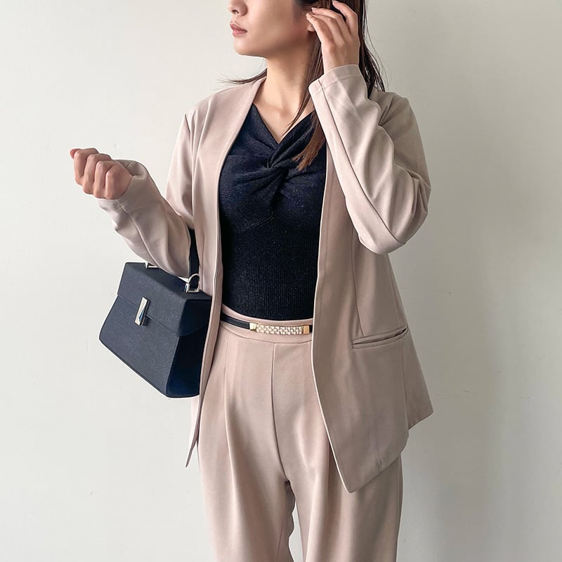 シンプルで洗練されたデザインが特徴のノーカラージャケット。ライトピンクとブラックの2色展開で、どんなスタイリングにも合わせやすいアイテムです。襟がないデザインなので、首回りすっきりとした印象を作り出します。ジャケットなのにカジュアルにもきれいめにも着こなせる優れものです。