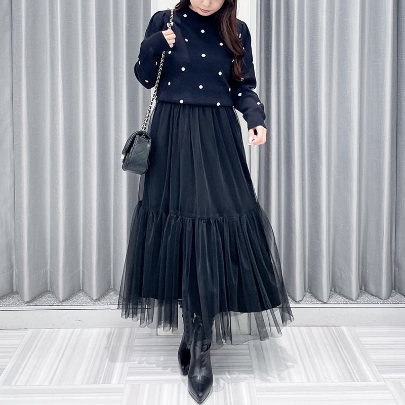 クルードット刺繍ニット レディース フェミニン 水玉 秋冬 20代 30代 40代