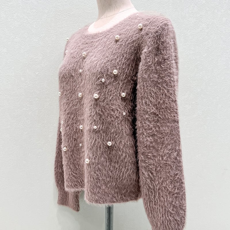 パール付ニット レディース フェミニン シャギー 秋冬 20代 30代 40代