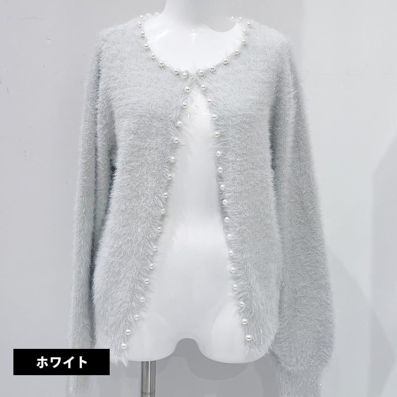 ラメフェザーパール付カーディガン レディース パール キレイめ フェミニン 20代 30代 40代