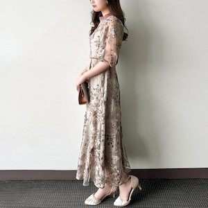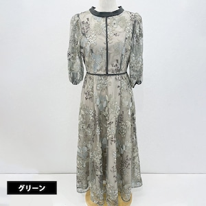 フラワーエンブロイダリードレスは、華やかな花柄刺繍が特徴のエレガントな一着です。ピンク、ブラウン、グリーンの3色展開で、それぞれのカラーが独自の魅力を引き立てます。結婚式や謝恩会等、パーティーシーンに大活躍です。